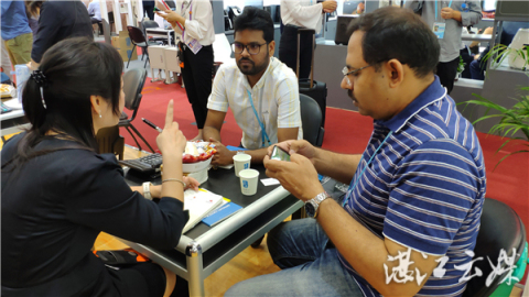 在廣東鴻智智能科技股份有限公司的展位上,擠滿了前來洽談生意的客商,現場工作人員簡直忙不過來。兩名來自捷克的“老顧客”,正拿起公司的新產品電熱水壺詳細了解,頻頻點頭?,F場的工作人員翻譯介紹說,這兩名“老顧客”從5年前的廣交會開始,每一年都會來鴻智了解新產品、下訂單,而這樣的老顧客不在少數。參展期間,工作人員每一天都像打仗一樣忙碌,也取得了很好的交易成效。