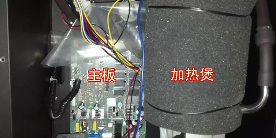 2. 用螺絲刀拆開咖啡機(jī)的后蓋板,將看到加熱煲和主板。如下圖所示