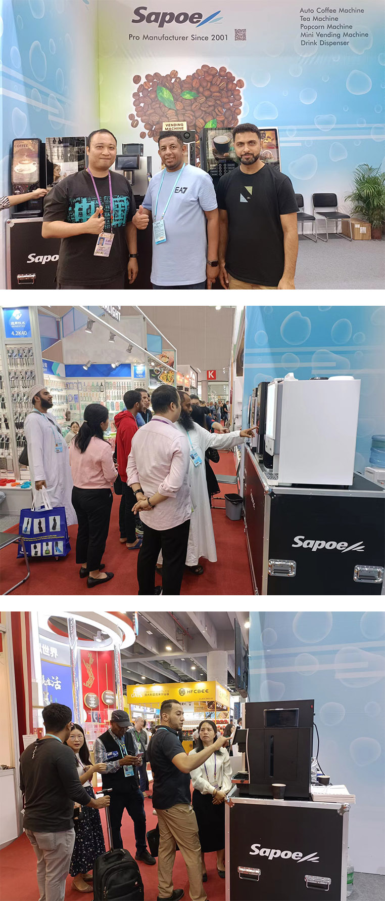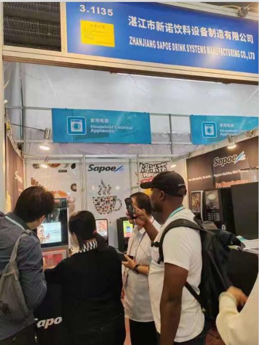 After several years of the pandemic , this Canton Fair has the highest number of overseas buyers and exhibitors.The exhibition of Sapoe also is the highest in history at this Canton Fair , our local government has given us booths for the first, second, and third phases.At this exhibition, we are showed over a dozen of Sapoe classic coffee machines, also introduced many new products such as the AURORA series full automatic table bean to cup coffee vending machine and GIOIA full automatic popcorn machine.This Canton Fair has a large number of purchasers from countries and regions jointly building the "the Belt and Road",our negotiation table is fully all the time,at least 100 buyers come to negotiate every day.Some new customers also placed the orders on the spot, according to the feedback from customer managers.