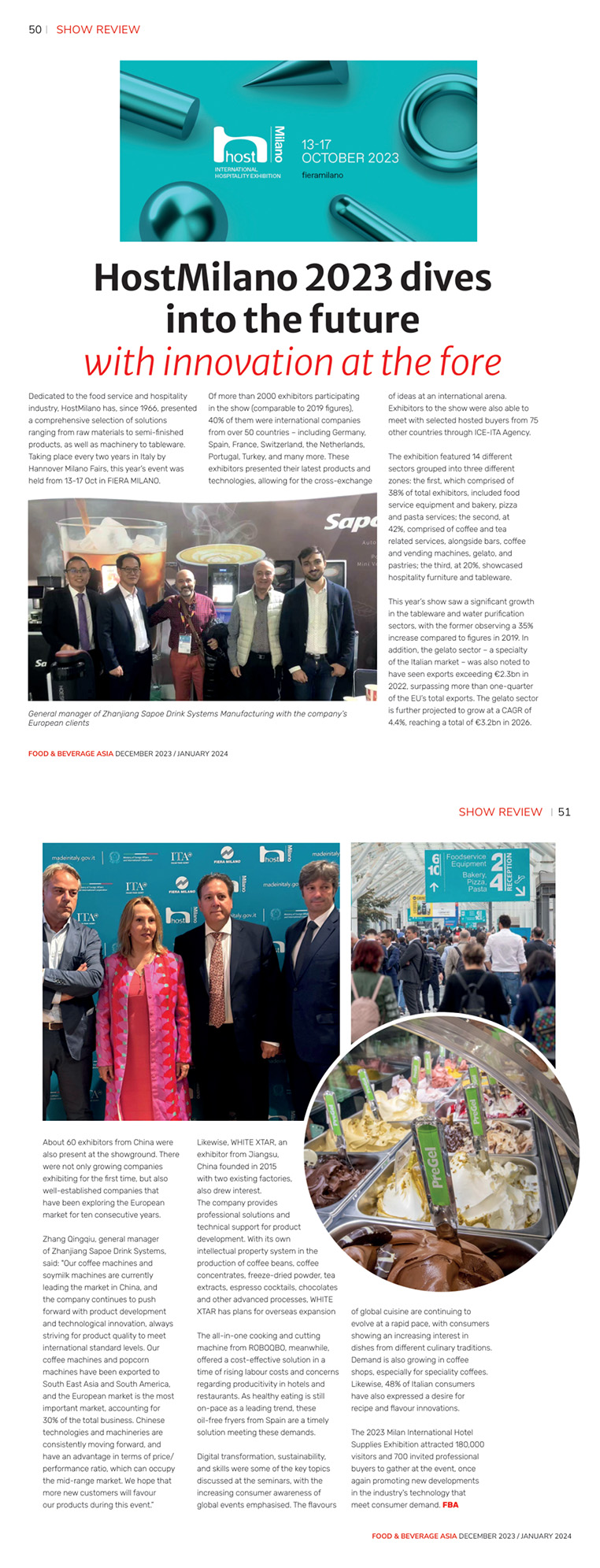 來自新加坡《FOOD&BEVERAGE ASIA》雜志的報(bào)道