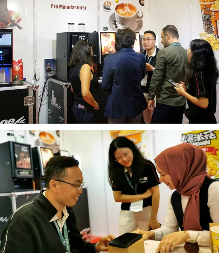During the four days of the exhibition, SAPOE Xinhua's booth attracted more than 500 visitors, including local customers from Turkey and Mediterranean and Central Asian countries such as Oman, Greece, Algeria, Saudi Arabia, Dubai and Iran. Many customers have shown strong interest in new products such as new tea machines, coffee machines and automatic popcorn machines from SAPOE Xinnuo, and have had in-depth negotiations with Aiscent's account managers and received a lot of orders.